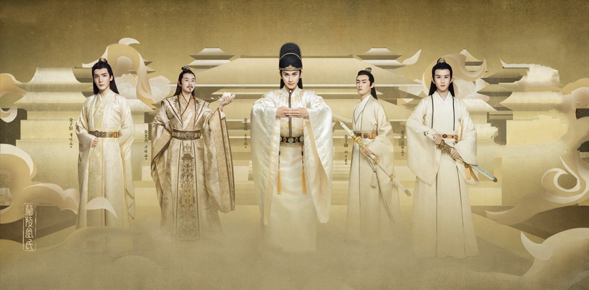 兰陵金氏:府邸:金麟台,在今天的山东一带。族徽名为:金星雪浪的白牡丹。富贵的代表,除了有钱还是有钱。主要人物(依照海报从左至右):
