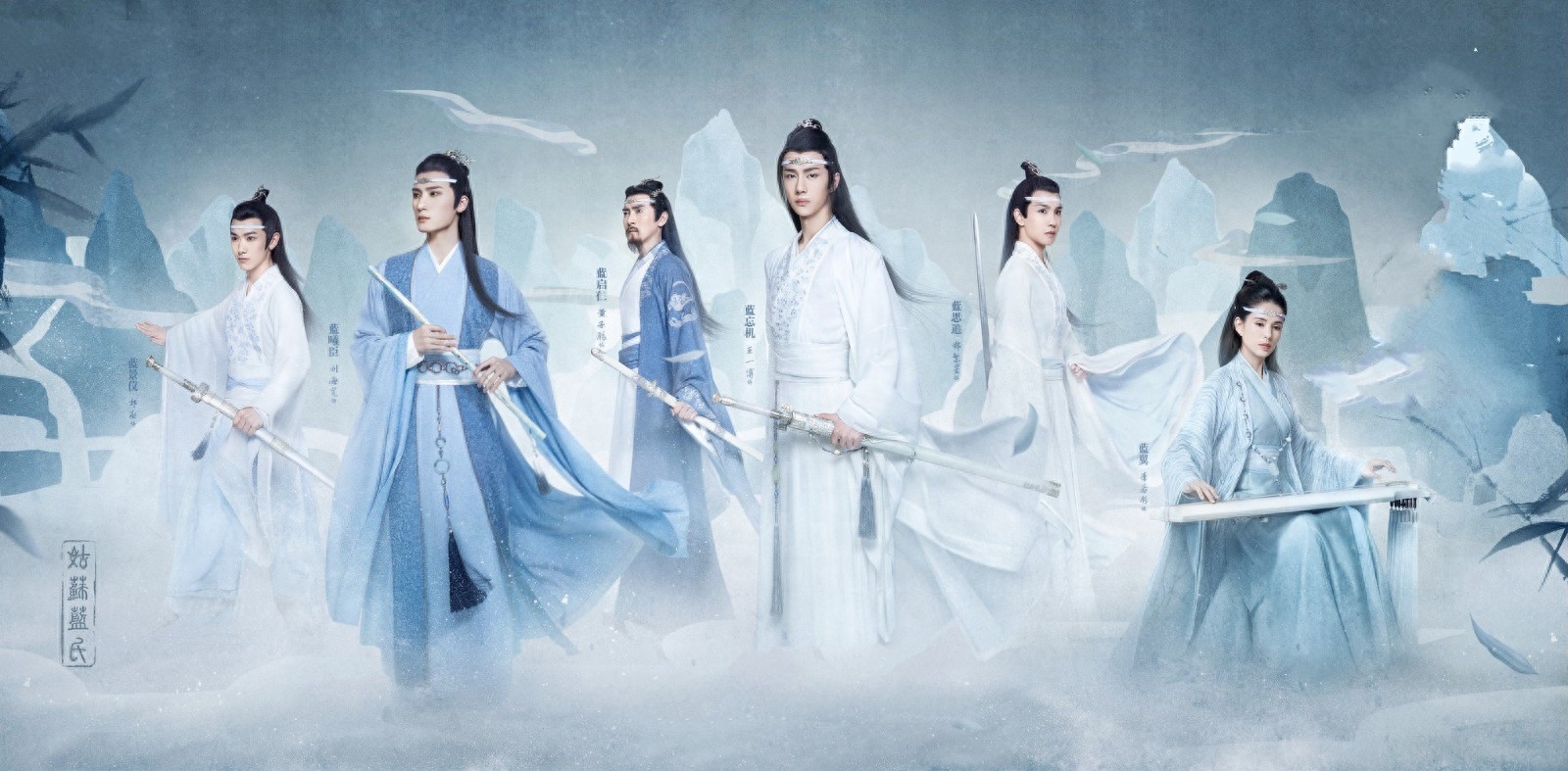 姑苏蓝氏:徽为卷云纹,府阺:云深不知处。位于今天的苏杭一带。家主芜君蓝曦臣,有4000多条家规,崇尚“雅正端方”所教出的弟子个个出类拔萃,是以虽有家训四千多条,但仍有各世家纷纷把弟子送到云深不知处求学。主要人物(依照海报从左至右):