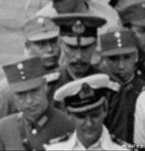 头戴大檐帽,留八字胡者为密苏里舰对日受降仪式中国代表团二号人物杨宣诚海军中将