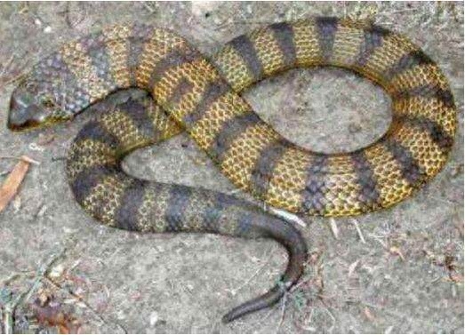 虎蛇属眼镜蛇科,产于澳大利亚;其毒液含凝血剂和神经麻痹剂,常使人毙命。向人攻击之前,头和颈部膨胀成扁平状(眼镜蛇的方式)。 虎蛇为常见种类,澳大利亚南方地区的沼泽地数量极多。体呈多种颜色,一般有褐色和黄色条纹。平均体长1.2公尺(4尺)。体长约1.3~1.6米。 蛇身厚实,头部宽大,身体呈浅暗橘黄色或茶色,并伴有黄绿色、灰色或橘褐色箍环,生于澳大利亚和塔斯马尼亚岛半干旱区域。虎蛇攻击性强,含剧毒液,是致人死亡的主要蛇种栖。同时也是传奇游戏中的一种怪物。