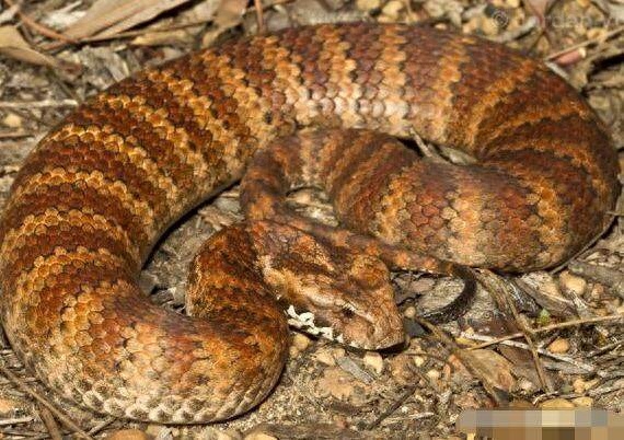 中名:南棘蛇,南部棘蛇,死亡蛇。肤色淡褐、淡红或灰色,缀有深色箍环,蛇身粗厚,体长约45-60厘米,生活在澳大利亚大部、巴布亚新几内亚及附近一些岛屿上,多在沙地上生活,有完美的保色以及剧毒液,不过危险性不及虎蛇和眼镜蛇科大毒蛇,它是世界上排第九毒的蛇。