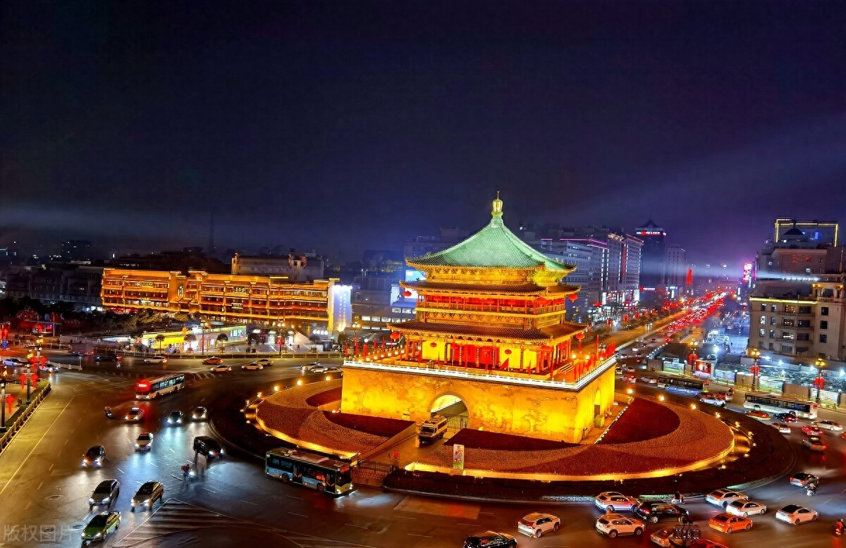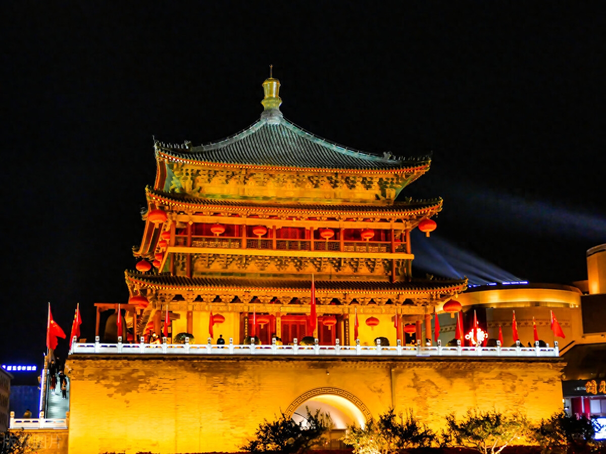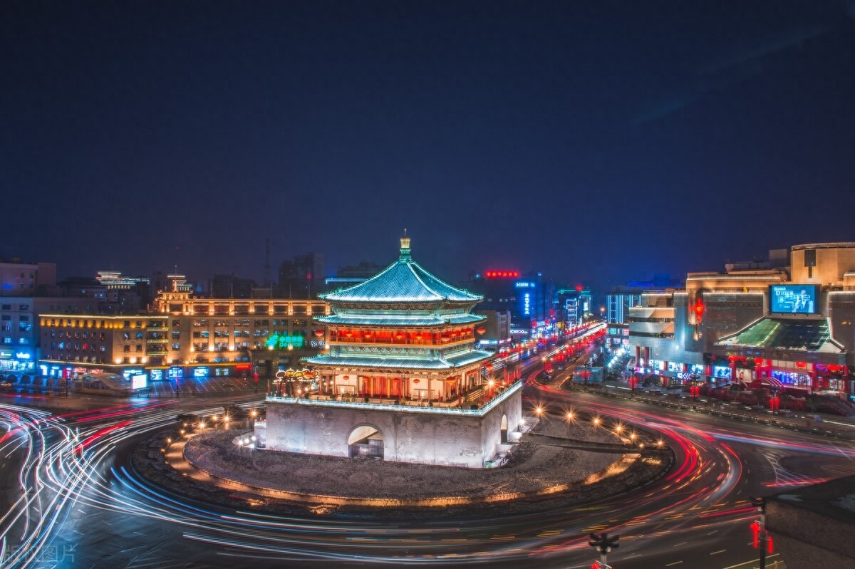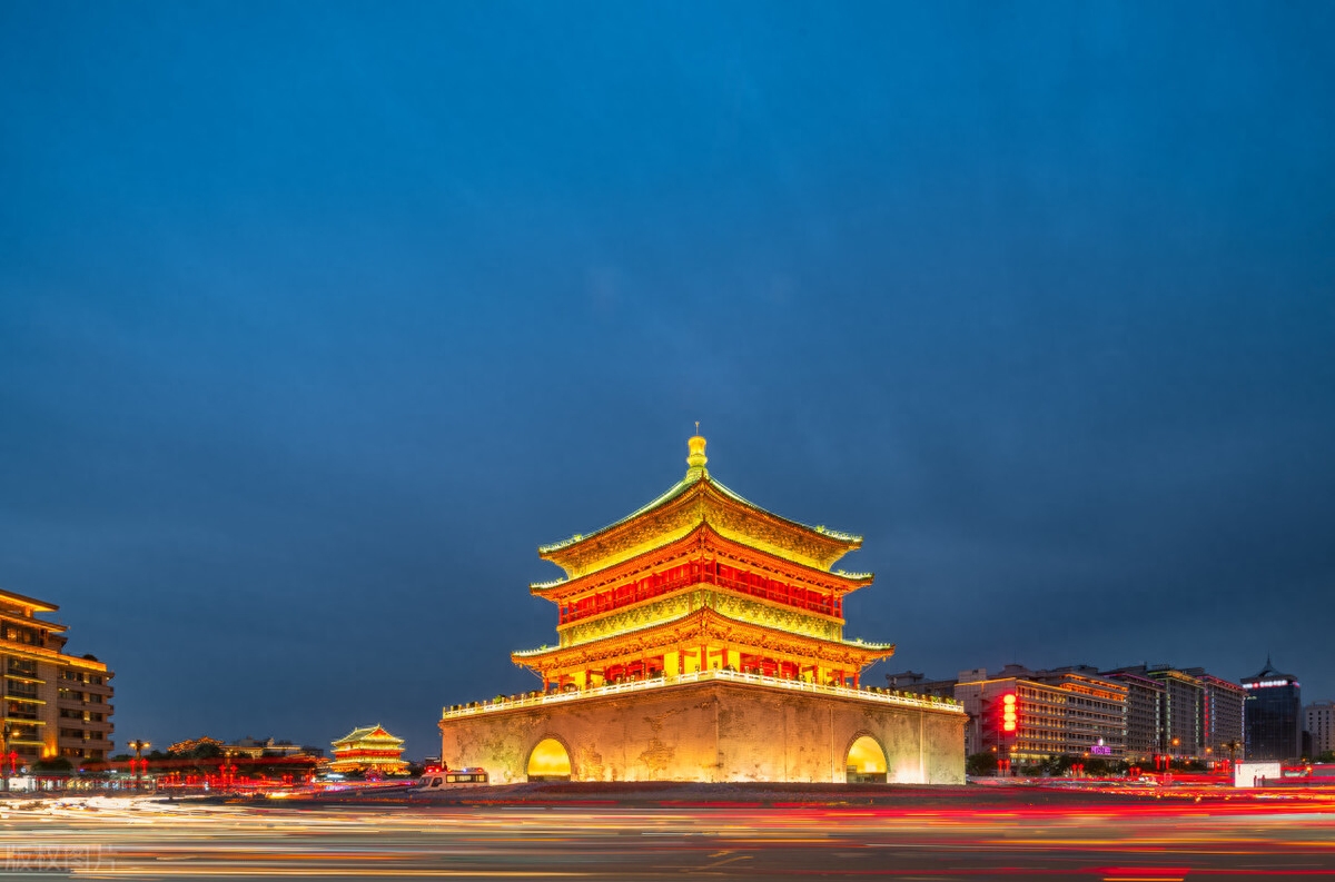 钟鼓楼是西安的标志性建筑,晨钟暮鼓,新年的氛围超浓。华灯初上,雕梁画栋的钟鼓楼建筑,璀璨夺目,绝美的夜景呈现在眼前,登楼俯瞰盛世长安,跨年夜的鸣钟击鼓声在这里敲响,仪式感满满!