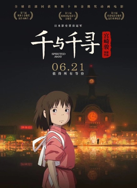 《千与千寻》是一部由吉卜力工作室制作、宫崎骏担任导演和剧本,柊瑠美、入野自由、中村彰男、夏木真理等配音的动画电影,于2001年7月20日在日本上映,于2019年6月21日在中国内地上映。 该片讲述了少女千寻意外来到神灵异世界后,为了救爸爸妈妈,经历了很多磨难的故事。[1]2002年,该片荣获第52届柏林电影节金熊奖、第75届奥斯卡金像奖最佳动画片等十多项以上日本国内外电影大奖。