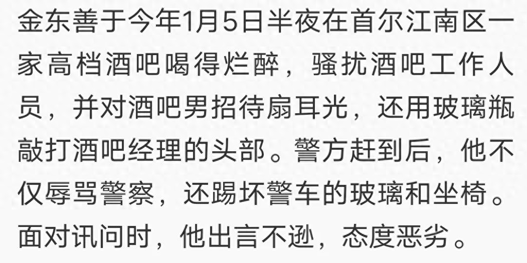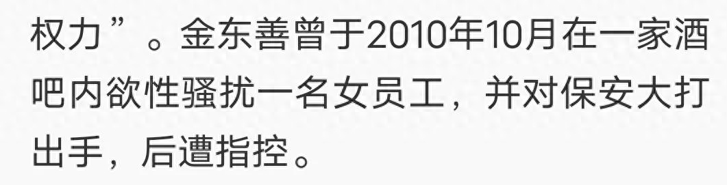 这次金东善并没有入狱,因为被打者没有继续追责,检方也就就坡下驴以证据不足把他放了。