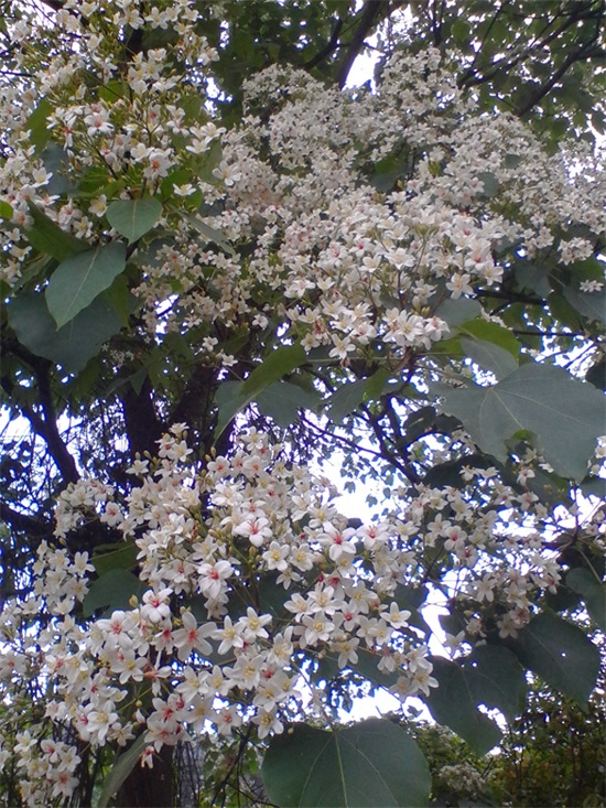 梧桐树也是一种常见的绿化树木,春天开花,开出一大片一大片白色的花朵。,非常的壮观。到秋冬季节结果,结出来的果实就是梧桐果,能够用来榨油。