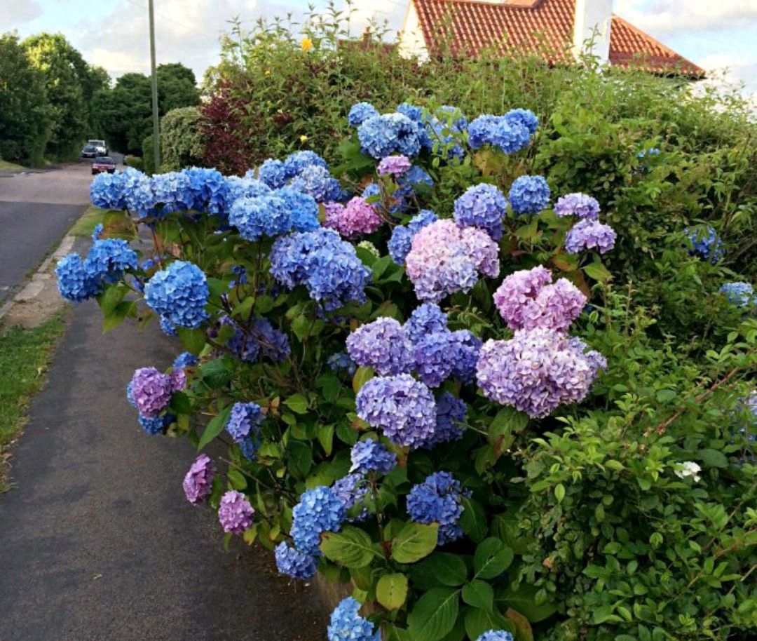 提到月季就不得不说一下绣球花,这也是一款非常优秀的花园素材,花色红的、蓝的、粉的、白的等等,应有尽有。