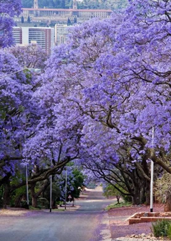 蓝花楹是一种高大的树木,开出蓝紫色的花朵,一树一树的,特别的震撼。