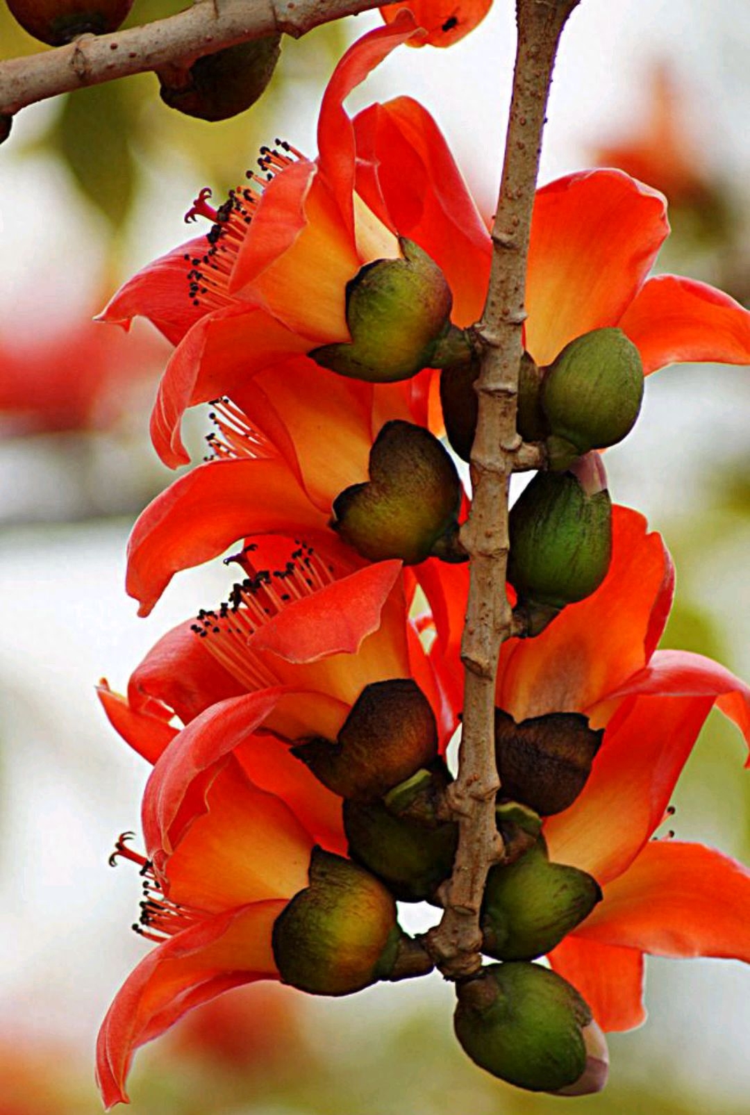 木棉花,在华南地区很常见,每年春天3月到4月份,枝头上还没长叶子,却早早地开出了一树红花。花朵盛开之后,掉落,啪的一声掉在地上,就被人们拾去了,晾干来做花茶。