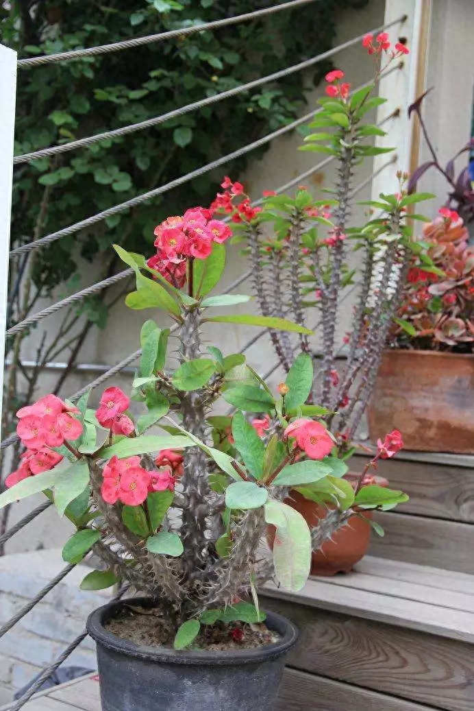 虎刺梅,又叫铁海棠,是一种常见的观赏植物。