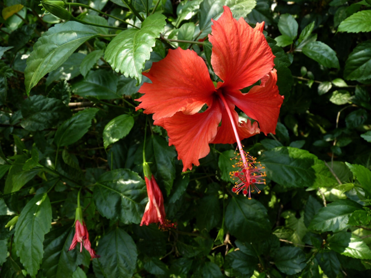 蜀葵在很多南方城市可见,多年生的野生蜀葵,又叫一串红,因为它会沿着它的杆子一直不停地往上长出,大红色的花朵。注意与下面的一串红区分开来。
