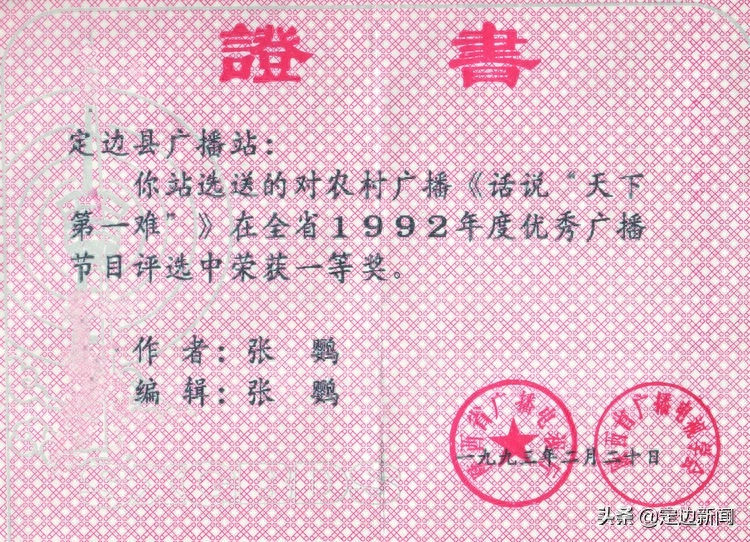 从广播站到广播电台,从电视转播到电视台,牢牢把握正确的舆论导向,在政治上与党中央保持高度一致,积极宣传党和政府的方针政策;坚持"三贴近",传播先进文化、普及科技知识;关注社会、关注民生;不断丰富节目内容,从当初的读报,发展到集新闻、评论、科技、文化、娱乐等十多个栏目的综合频道,从每天的三次播音到全天播出,成为定边的主流媒体。传承上三个文明,播时代先进文化,唱响时代主旋律。电台、电视台每年播出新闻1200多条,每年有10多篇新闻作品在市以上获奖,每篇新闻作品都烙印了时代的特征。1982年王永义采写的荣获榆林地区广播电视局一等奖、省广播电视厅三等奖新闻《回民尤俊忠和他的汉族老人》反应了定边回汉民族和睦相处情景。1986赵文斌采写的荣获省新闻学会一等奖、中国广播电视学会二等奖广播新闻《张一万卖羊》就反应了改革开放初期扶贫帮困的好人好事。1989年赵文斌、张鹦采写的获市广播电视局三等奖的广播新闻《过去养儿怕抓丁,如今养儿怕娶亲》反应了娶媳妇要彩礼的陋习。1991年张鹦采写的荣获市广播电视一等奖、省广播电视厅、省广播电视学会一等奖的广播专题《话说"天下第一难"》就深刻反应了农村计划生育的艰难。1992年张鹦采写的荣获市广播电视局二等奖的广播新闻《乡长辞官干个体》反应了经济浪潮中第一个吃螃蟹的人。,1996年张鹦采写的荣获市广播电视学会一等奖广播通讯《托起山中的太阳》反应了扎根山村教育的青年人。1996年张鹦采写的荣获市广播电视学会一等奖、省广播电视厅二等奖、陕西新闻工作者协会三等奖、陕西省好新闻三等奖电视新闻《我县村村建起"储粮会"》定边民政局储备农民手中余粮的独特作法。1997年张鹦荣获市广播电视学会一等奖的电视专题《黄土高原的希望》退耕还林保持水土的重要性。1998年张鹦、顾秀萍采写的荣获市广播电视学会二等奖电视新闻《我县有了电视电话村》反应了改革开放发展经济后农村的变化。1999年张鹦、麻永军采写的荣获市广播电视学会、市广播电视局二等奖的电视评论《村官让咱庄户人选》村民自治民主选举村干部的好处。1999年张鹦、赵明山采写的荣获中华全国新闻工作者协会、中国广播电视学会、中华全国农民报协会二等奖、陕西省"五好文明家庭""绿色家园"创建领导小组一等奖、省广播电视协会、省广播电视厅二等奖、省新闻工作者协会三等奖、市广播电视协会、市广播电视局一等奖的电视专题《文婷和她的生态农场》反应了发展生态农业的典范。2000年张鹦采写的荣获中华全国新闻工作者协会、中国广播电视学会、中华全国农民报协会二等奖的电视专题《西部开发水为先》反应了西部开发水的重要性。2002年张鹦、牛天喜采写的荣获市广播电视学会、市广播电视局二等奖的电视新闻《"十六大"的召开增添了石光银的治沙信心》反应了国家土地政策给承包户吃了个定心丸。2002年张鹦采写的荣获中华全国新闻工作者协会、中国广播电视学会、中华全国农民报协会二等奖人物通讯《网络连千村,荧屏进万家》反应了让老百姓都能听到广播、看到电视的先进人物。2004年张鹦、顾秀萍采写的荣获市广播电视奖二等奖的电视系列报道《贯彻"一号文件",促进农民增收》反应了中央几年一号文件发展农业关心农民基层的措施。2006年陈殿国、张岩采写的荣获陕西新闻工作者协会评选的陕西新闻奖二等奖、榆林市新闻奖、广播电视奖一等奖电视新闻《农民刘学忠发明制造的洋芋收获机获国家专利》反应了锐意创新发展农业的农民能手。自优秀新闻稿件评选开展以来,定边每年有10多篇新闻获奖,到目前有近500篇新闻作品在中、省、市获奖。