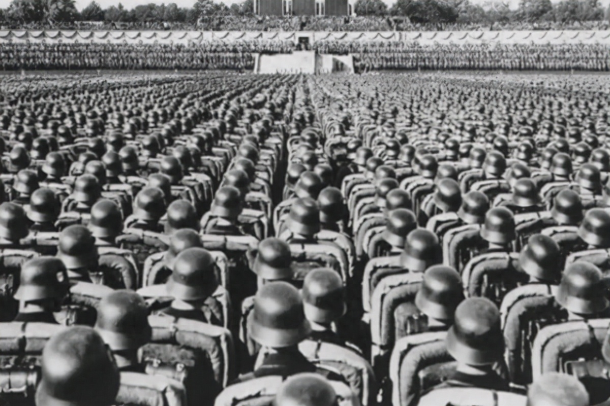 自从希特勒上任后,打破“凡尔赛条约”,公开实施义务兵役制,召集大量的青年入伍。所以在第二次世界大战前,德国缩减的十万军官,短短时间内就训练出战斗力强劲的百万大军,实力可以横扫欧洲。