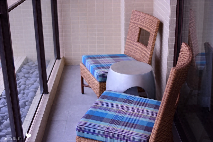 来到我们的房间,一开门,哇,真是相当亮堂,有大大的阳台,阳台外面是广阔的空间,大片绿色的草坪,草坪之外是一条河,河对岸是大片的漂亮别墅,另外一边就是美丽的大雁山。视线没有阻挡,真是一个观景的绝佳所在。