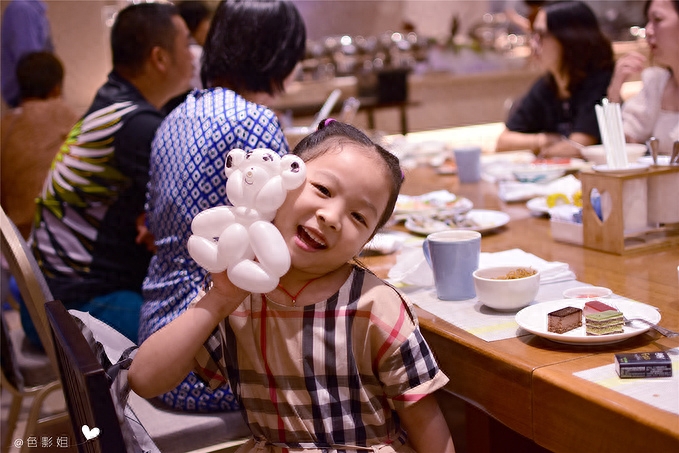 正在吃饭,小朋友最爱的小丑叔叔过来了,问锦宝喜欢什么小动物,说小熊猫,叔叔有一双灵巧的手,真的现场就做了一个小熊猫,还画上了眼睛,谢谢叔叔,把小锦宝乐坏了!回到房间,我教她用保险柜,我说这个是用来放贵重物品的,小锦宝就把心爱的小熊猫和小免子锁进去了。