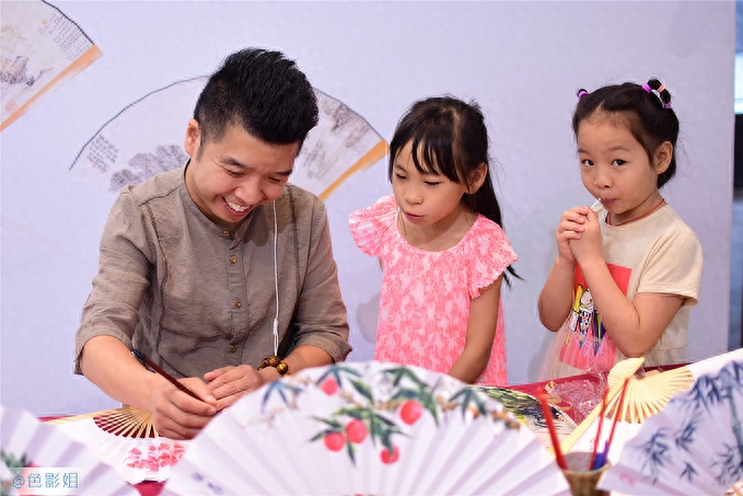 画家叔叔被这些天真无邪的小朋友打动了,现场绘了扇子送了小朋友,哇真开心哦,小朋友学着怎么开折扇,这份珍贵的礼物要带回家,好好的珍藏和欣赏。