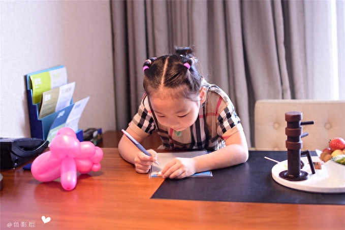 早上醒过来,计划吃完早餐,就去转转酒店,寻找藏在各处的美术作品,到了艺术酒店就要赏赏画。洗漱完毕之后,在手机里找了一首舒缓的音乐,打开放在床上,就当起床铃吧,然后去打包行李,过了几分钟,锦宝就自己起床来到洗手间,过来刷牙了,姐姐和妈妈说锦宝有严重起床气,看起来好像没有哦,刷牙洗脸换衣服,然后梳辫子,穿上漂亮的小皮鞋,我们下楼吃早餐!