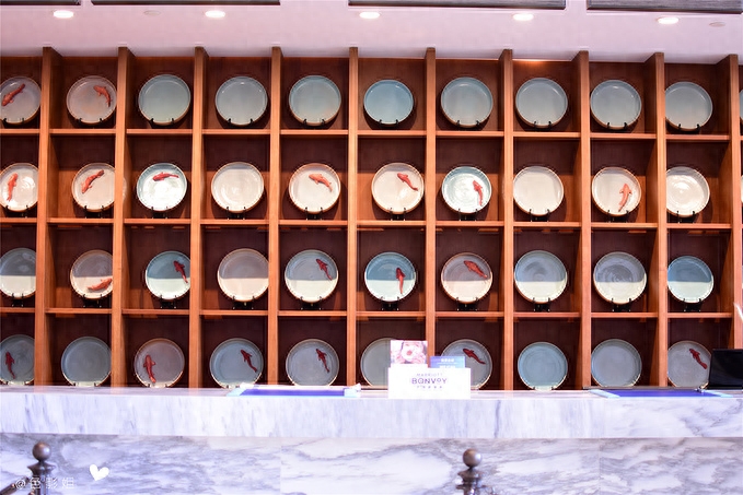 这次锦宝贝和姑姑一起入住亲子客房,踏入酒店就是浓浓的艺术氛围,所到视线范围之内,都陈列着美丽的艺术品,油画、陶瓷,各种赏心悦目。去前台办理入住的时候,整个背景墙就是用了很多的金鱼和陶瓷盘子的艺术拼贴而成,令人印象深刻。