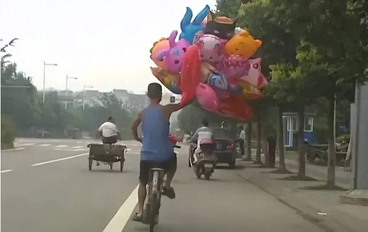 “左手扶着方向盘,右手拿着一把气球在沿街售卖”,就是谭乔对“气球哥”的最初印象。