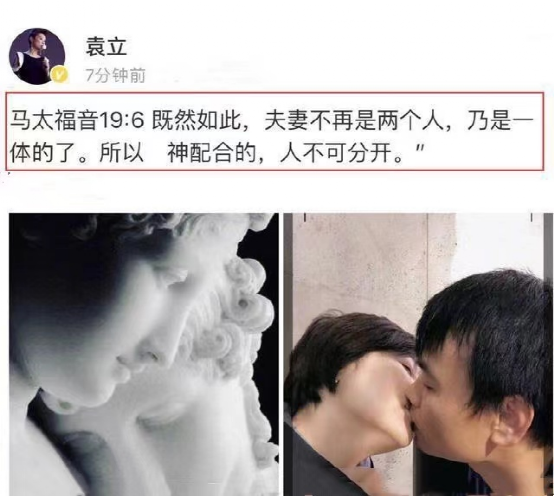 就在这件事情发生两个月左右,袁立晒出了一张吻照,言语中“夫妻”等字眼官宣了结婚的事实。