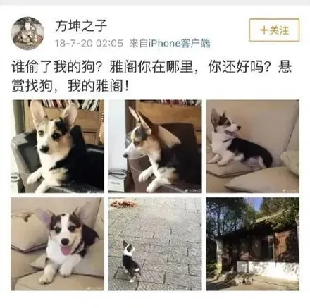 2018年7月20号,一位叫“方坤之子”的网友四处的寻找他的狗,雅阁。