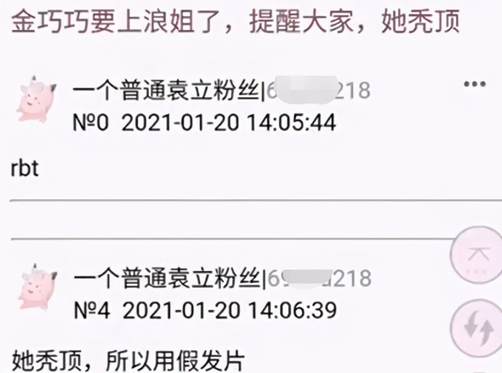 时至今日,金巧巧参加《浪姐》,还有疑似袁立的小号,爆料金巧巧秃顶。
