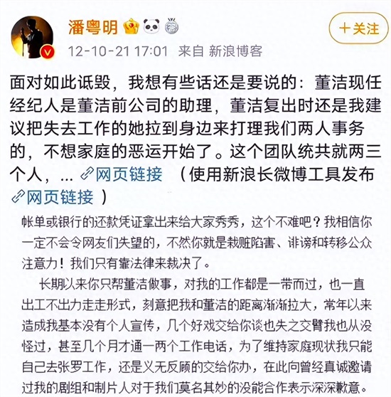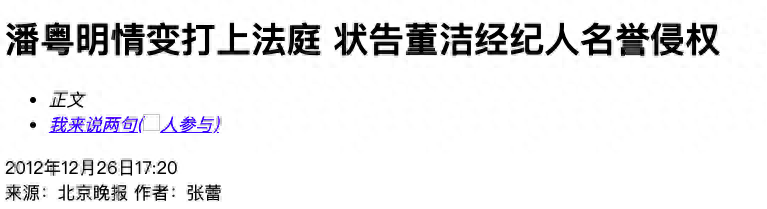 婚变--被董洁工作室泼脏水--起诉董的经纪人--董洁经纪人反咬董洁指使--潘粤明胜诉