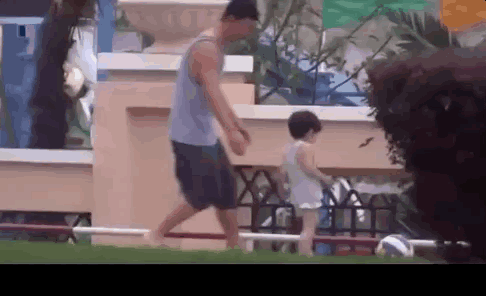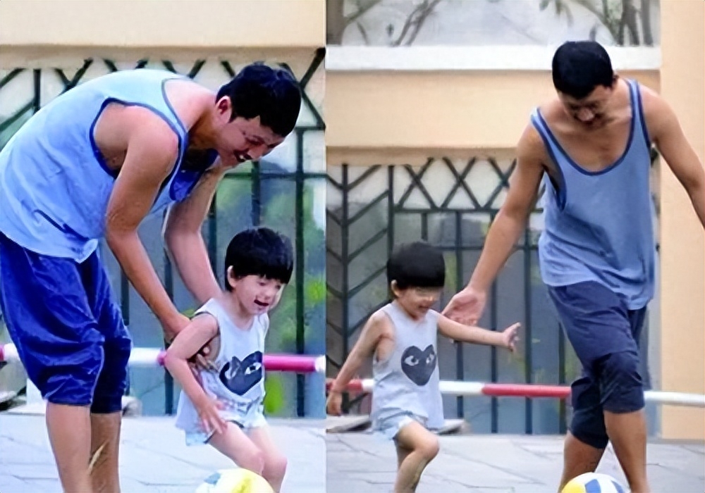 潘粤明跟顶顶一起踢球,也是为数不多我们外人能看见的父子同框画面了。