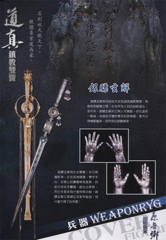 银骠玄解为左右双拳,亦分两仪乾坤,左右各为阴阳,双手手心、手背上的图像稍有差异,右手阴因此可变化为刀,而左手阳则变化为剑,同时左右银骠能抡转化盾。