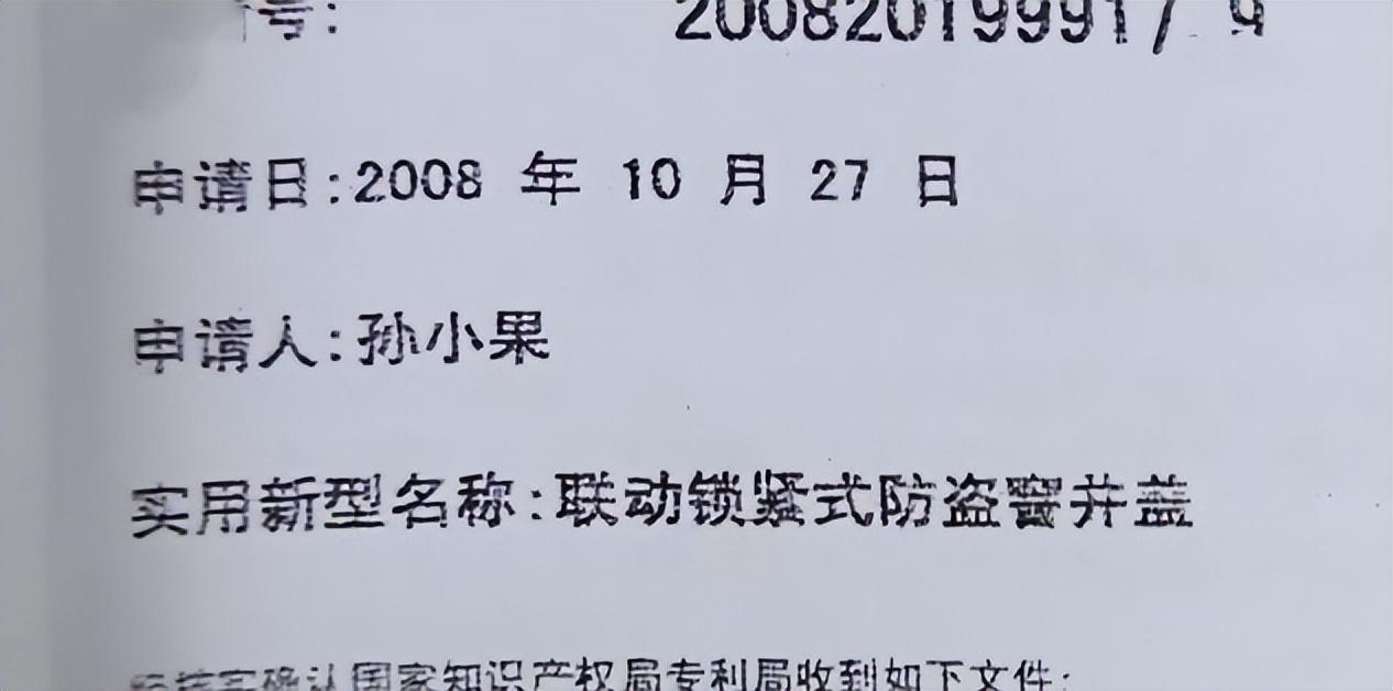 副监狱长的案头,放了一份“防盗窖井盖”专利发明,署名:孙小果。