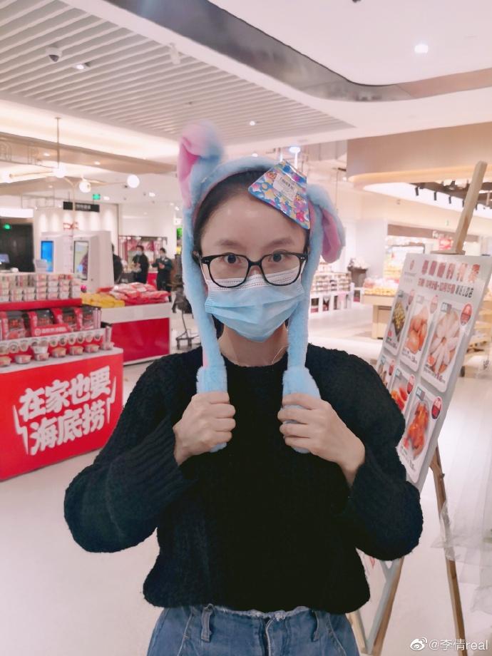 和家人去超市购物会很开心,会把可爱的帽子戴在头上,然后让家人帮拍照。