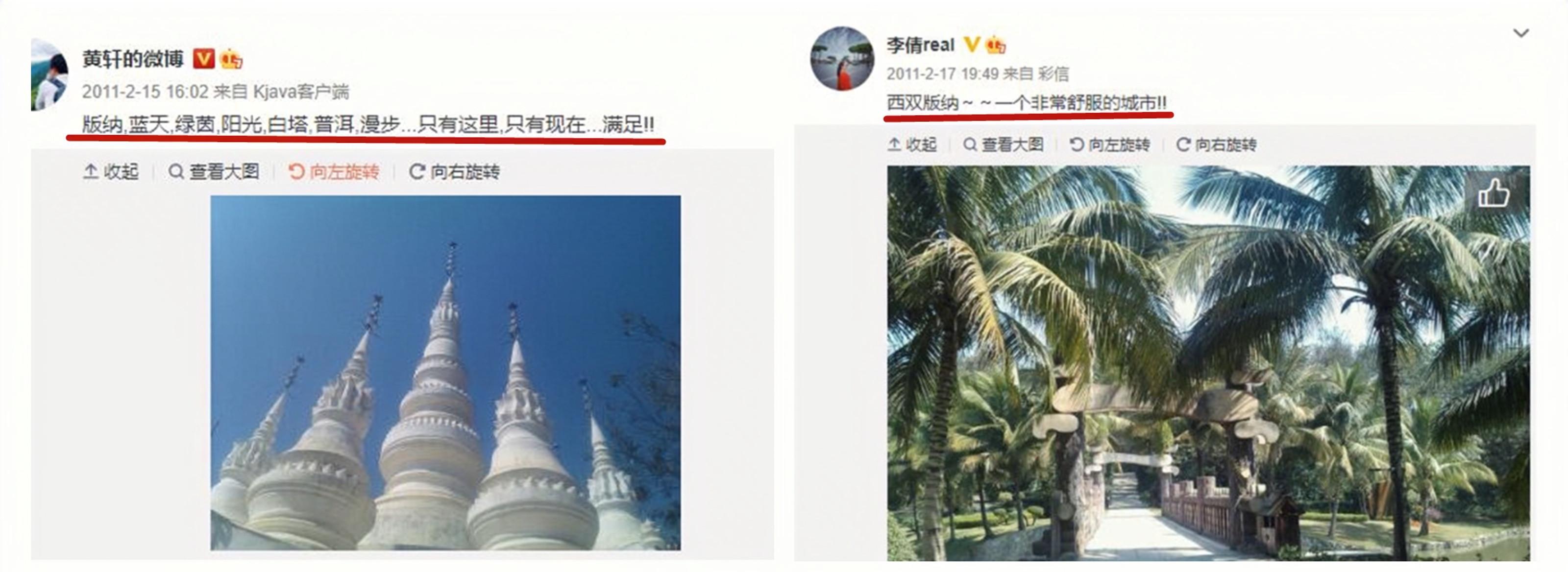早在2011年2月份的时候,两人就先后发出在西双版纳游玩的照片。