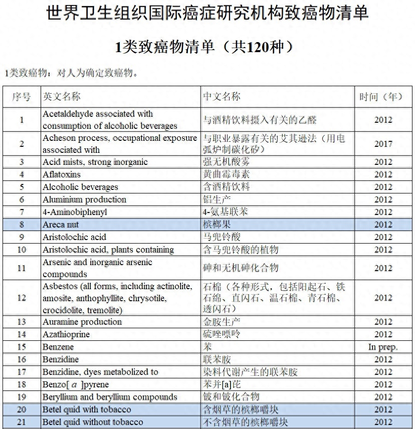 2003年,国际癌症研究机构还把槟榔列为了一级致癌物,跟砒霜是同一级别。