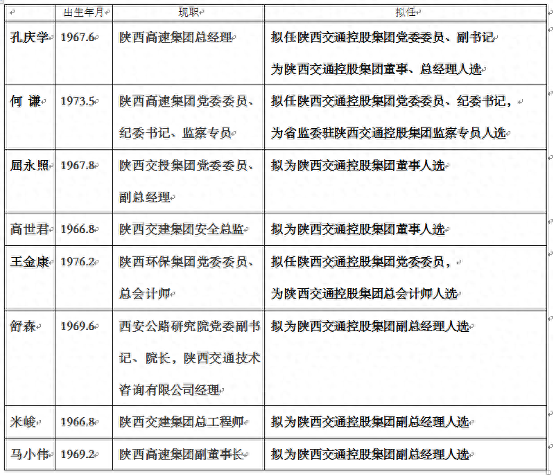据陕西党建网发布的干部任职公示显示,包括总经理在内,陕西交通控股集团班子中将有8人履新。