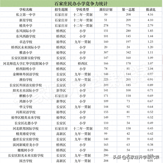 石家庄民办小学摇号招生,竞争力最强的十所民办小学都有谁?