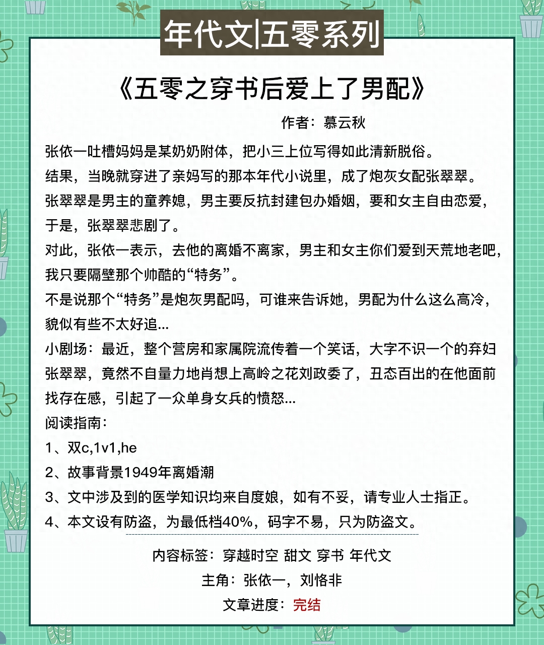 第八本《五零之穿书后爱上了男配》作者:慕云秋(还没看!等排雷)