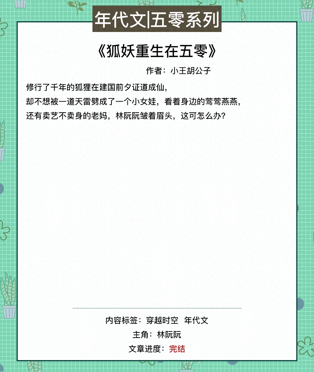 第五本《狐妖重生在五零》作者:小王胡公子(还没看!等排雷)