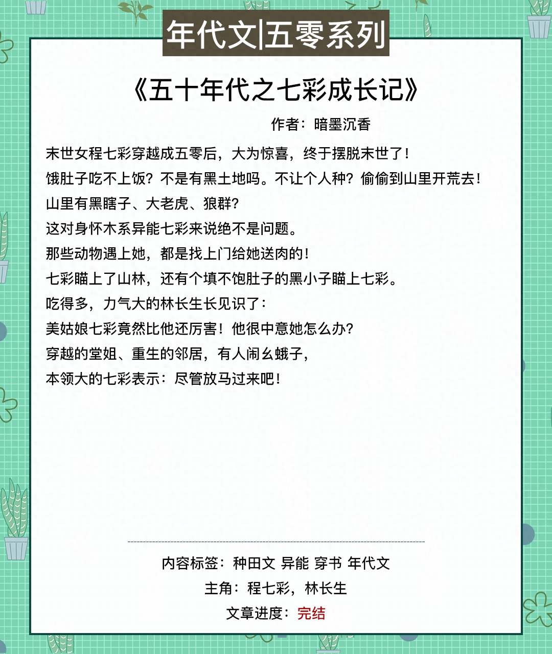 第二本《五十年代之七彩成长记》作者:暗墨沉香(还没看!等排雷)