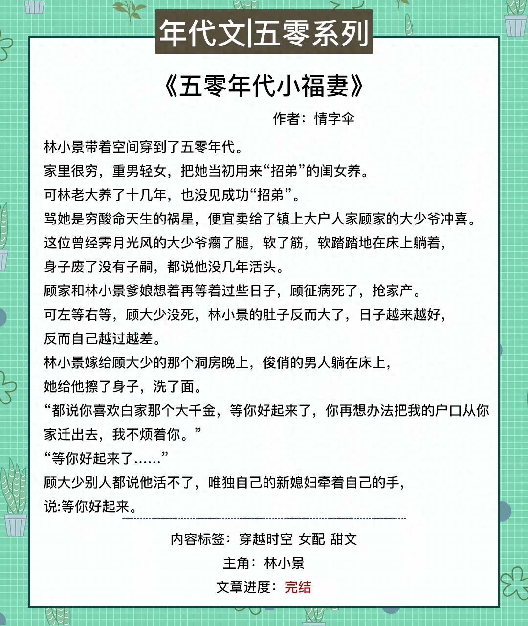 第六本《五零年代小福妻》作者:情字伞(还没看!等排雷)