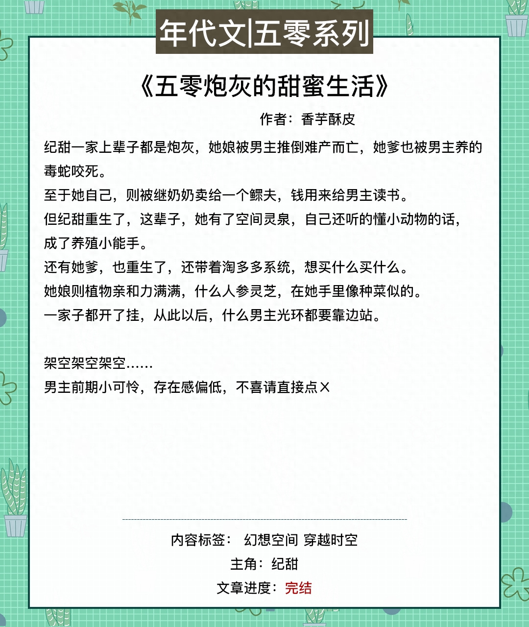 第七本《五零炮灰的甜蜜生活》作者:香芋酥皮(还没看!等排雷)
