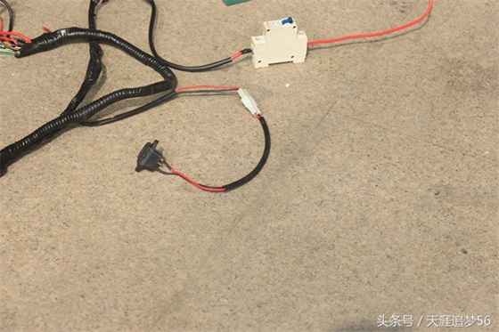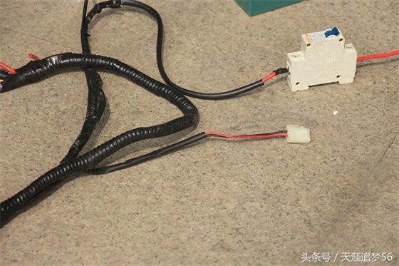 线束这头的正极在接入到空气开关上,这样就起到保护电池和电动车的做用了,若遇到短路它就会自动断电,所以当你电动车如果没有电的时候首要检查就是先看一下空气开关是否断电了。
