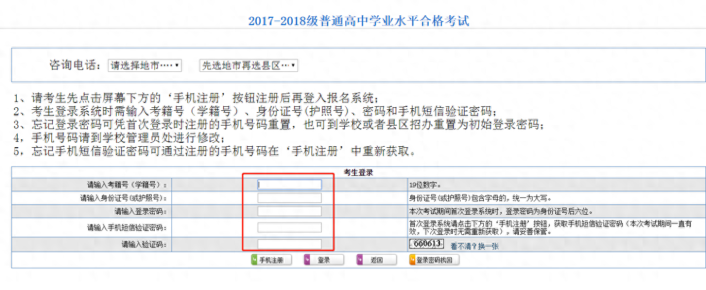 1、请仔细核实输入的信息,必须保证四者完全正确才可以登录系统。如有遗忘联系学校管理员或班主任,通过学校账户登录网上报名系统进行查询。