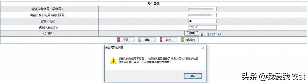 如系统提示考籍号、身份证号、密码、报名入口等信息有误。