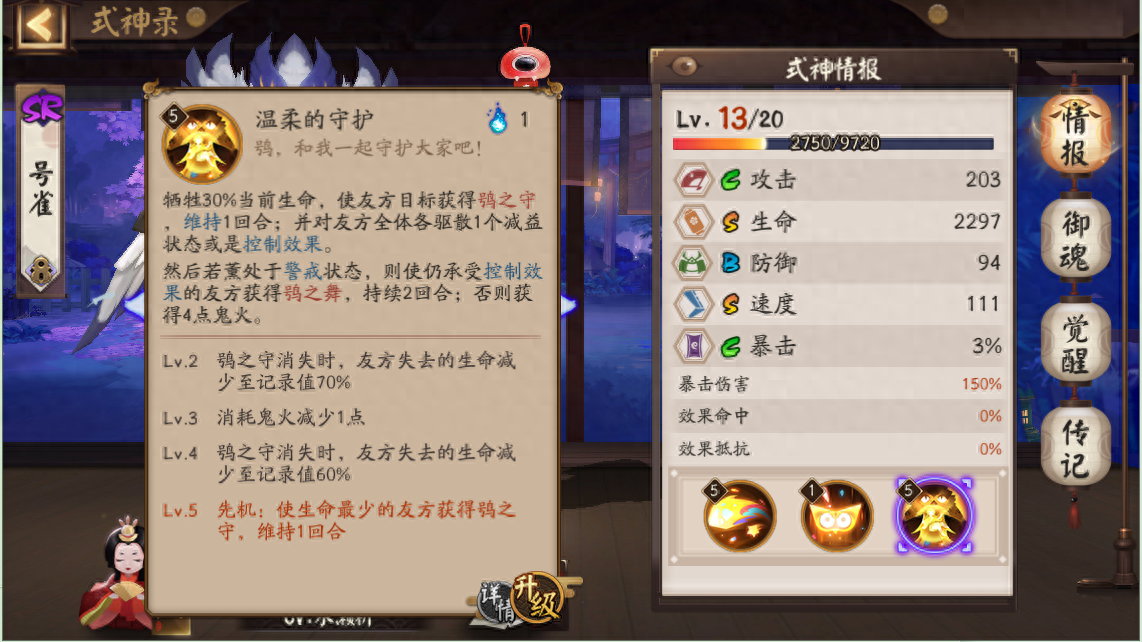 也是因此,熏最好带的御魂是招财,可以避免火不够用,御魂最好是二号位速度,四号位六号位都带生命加成,保证队伍的一个肉度,反堆一些抵抗。三技能记得好好用,并且自始自终最好只为一个队友守护,并且在维持的那一个回合内,灵活使用一技能击退一个敌方的行动条。