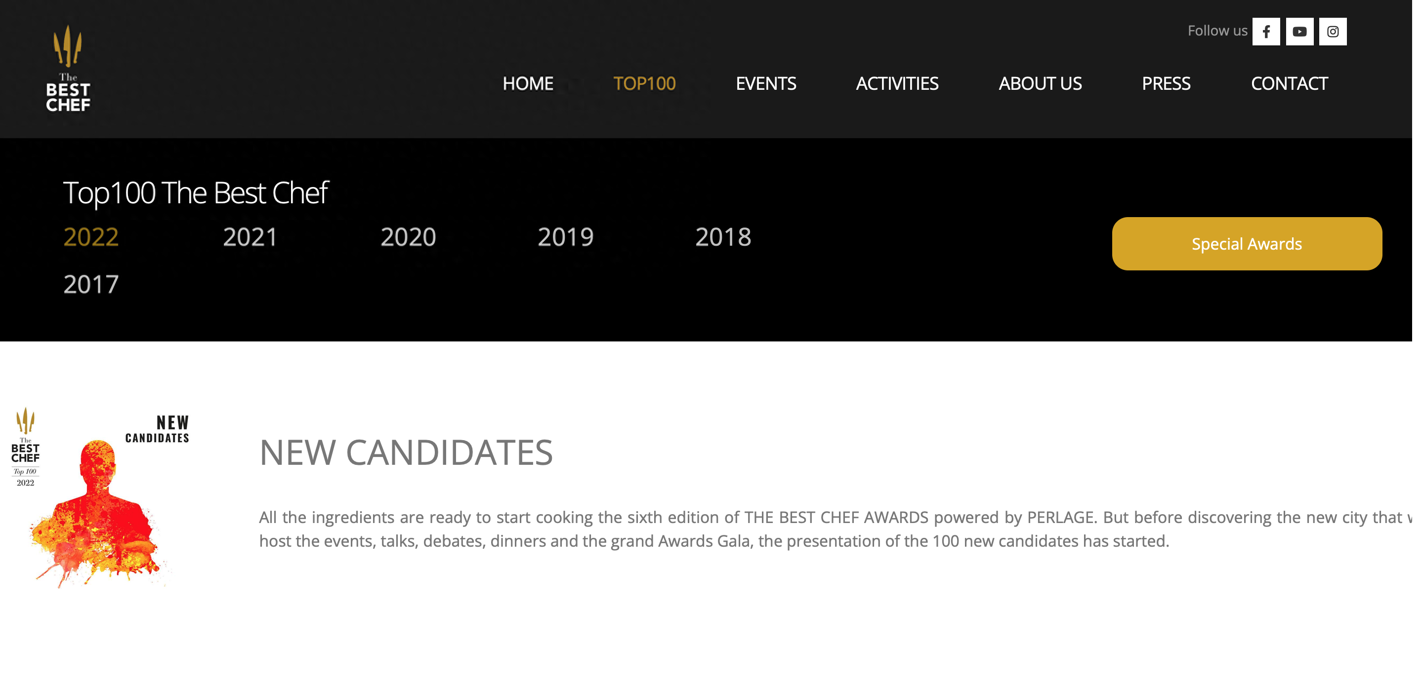 除了著名的百佳榜单外,今年增加了13个特别奖项,包括Best Chef Pastry(最佳西点师), Best Chef Rising Star(最佳厨师新星), Best Chef Science(最佳厨师科学奖)等等。