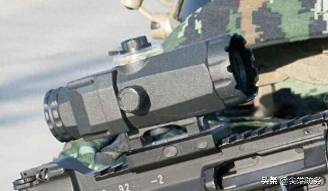 新枪一个重大改进是标配了光学瞄具,机械瞄具成了备用瞄具。新光学瞄具的放大倍率在3-4倍,设计特点是顶部旋钮周围有透明的集光部件,可以收集光线用以照明瞄具内部的分划。我国以往的班用枪族虽然设计时也配备了光学瞄具,但是实际上装备是以机械瞄具为主的,光学瞄具只是选择性装备的。虽然近些年部队越来越重视,光学瞄具装备也越来越普遍,但原来的设计是不完善的。