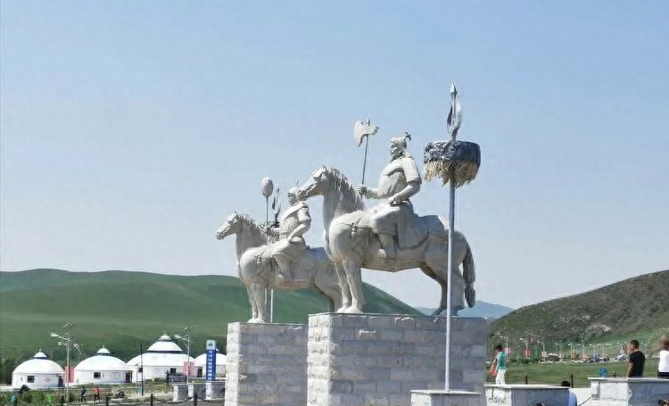 内蒙古成吉思汗陵景区入口处的造像,据说原型是速不台和哲别