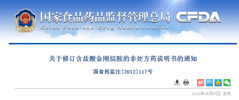 早在2012年,原国家食品药品监督管理局发出通知,要求1岁以下幼儿禁用含盐酸金刚烷胺感冒药,并要求对于儿童感冒药中含盐酸金刚烷胺非处方药的说明书做了重新修订。
