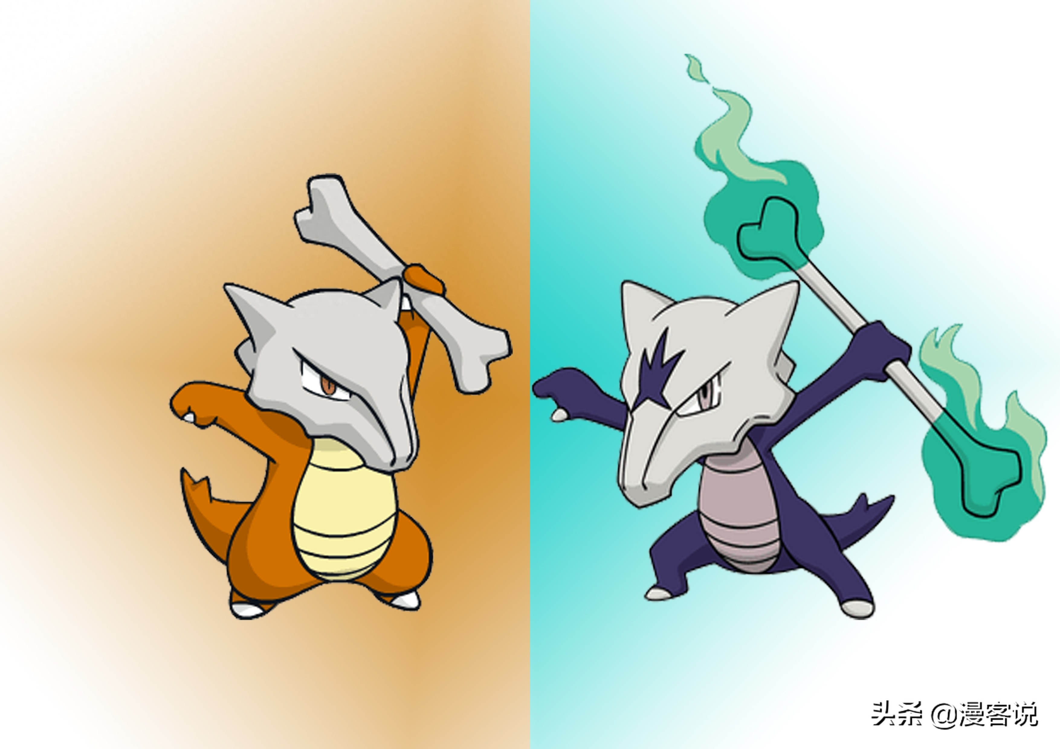 一般地区的嘎啦嘎啦是地面系,而阿罗拉地区的嘎啦嘎啦是火系加幽灵系,发生变化的原因是:由于在阿罗拉地区栖息着很多天敌的草属性宝可梦,对于卡拉卡拉和嘎啦嘎啦是十分严酷的环境。因此,它们和伙伴以强烈的团结心集结起来生活下去,据说从对伙伴的情感中获得了和神灵感应相近的感应,因而改变了样子。
