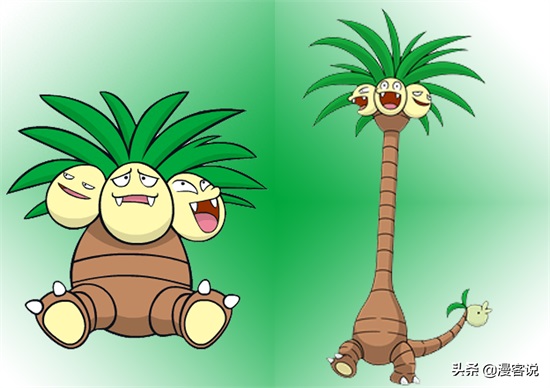 一般地区的椰蛋树是草系加超能力系,而阿罗拉地区的椰蛋树是超能力系加龙系。阿罗拉地区的椰蛋树比起普通椰蛋树个头高得多,因为它全年受到阿罗拉地区下环境猛烈阳光的照射,导致样子产生了变化。