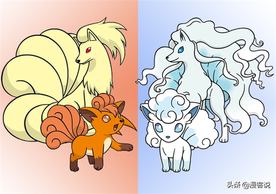一般地区的六尾和九尾都是火系宝可梦,而阿罗拉地区的六尾是冰系,九尾则是冰系加妖精系。因为普通的六尾和九尾都是生活在平原和靠近火山的地区,而阿罗拉地区的六尾与九尾则是生活在终年积雪的高山上,所以属性受环境影响而改变了。